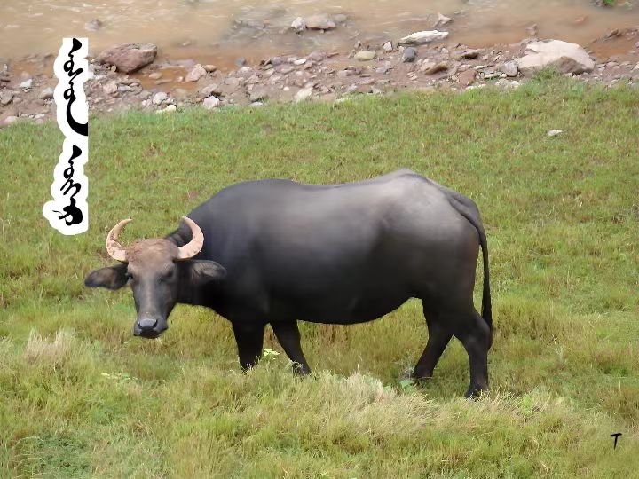 ᠬᠢᠲᠠᠳ ᠨᠡᠷᠡ᠄ 水牛角 (水牛)